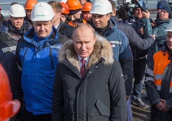 Президент побеседовал со строителями, проехал по мосту и выступил на митинге