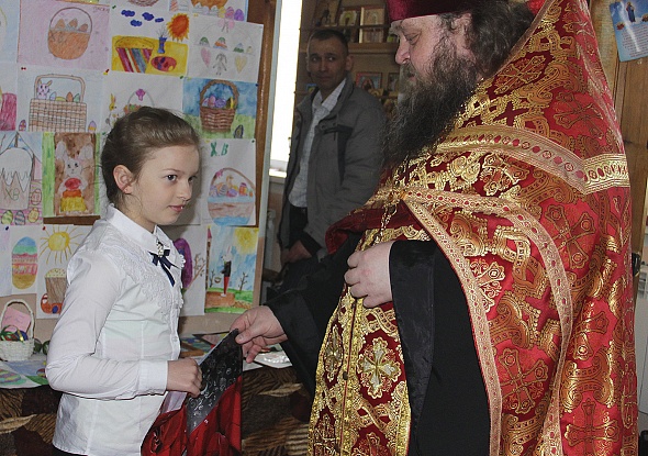Только что в Храме Преображения Господня настоятель Храма, протоиерей, отец Алексий Шевцов вручил подарки детям, победителям конкурса "Пасхальные рисунки и пасхальные поделки", а педагогам - благодарственные письма.
