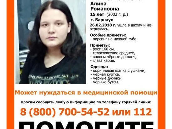 Местонахождение 15-летней девушки неизвестно с 26 февраля