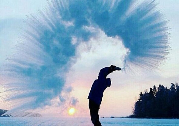 «Дубакчеллендж»—такое название получило новое развлечение, ставшее популярным среди сибиряков. Суть флешмоба состоит в том, чтобы выйти на мороз и выплеснуть в воздух кипяток. Все это необходимо зафиксировать на камеру. Горячая вода при низкой температуре моментально превращается в хлопья снега. Уже сейчас социальные сети переполнены фотографиями с необычным снежным рисунком.