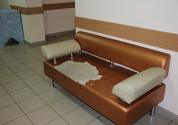 Эти мягкие диваны находятся в детской поликлинике города Змеиногорска. И ободраны они руками наших земляков.