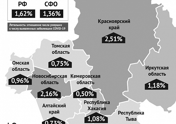 Информационный центр по мониторингу ситуации с коронавирусом подготовил данные на 23 июля по летальности пациентов с COVID-19 в процентном соотношении от числа выявленных случаев.