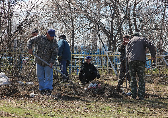 В селе Карамышево вот уже несколько лет подряд ветераны, пенсионеры собираются накануне родительского дня и наводят порядок на кладбище.