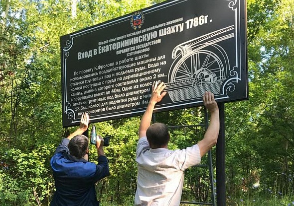 В рамках 95-летия Змеиногорского района сегодня в Змеиногорске был установлен новый стенд возле памятника истории регионального значения "Вход в Екатерининскую шахту".