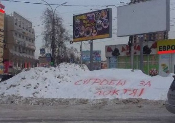 Новосибирские активисты написали на сугробе фамилию мэра города Анатолия Локтя. Спустя сутки коммунальщики оперативно убрали снежную кучу.