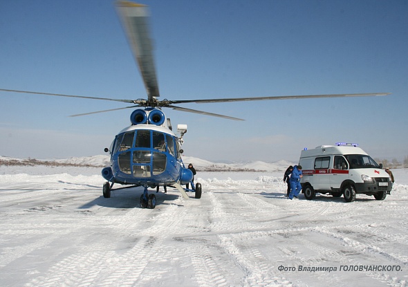 В целях экстренной медицинской эвакуации жителя Змеиногорского района 2 марта 2018 г. в 13 час. 10 мин. на аэродроме Змеиногорска совершил посадку новый вертолет санитарной авиации.