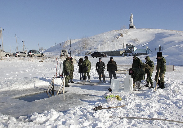 Праздник Крещения Господня проходит сегодня в Змеиногорске, 19 января. На Нагорном пруду состоялся чин великого освящения воды, который провел настоятель храма Преображения Господня, отец Алексий. Перед этим состоялся крестный ход от нашего храма к пруду.