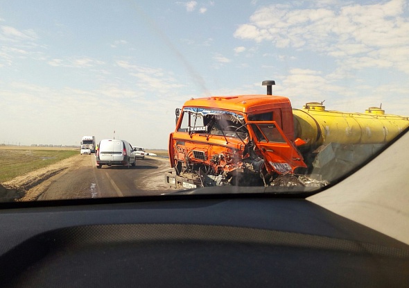 Легковушку снесло с трассы после жесткого столкновения с КамАЗом на Алтае