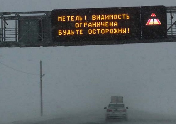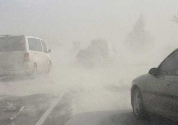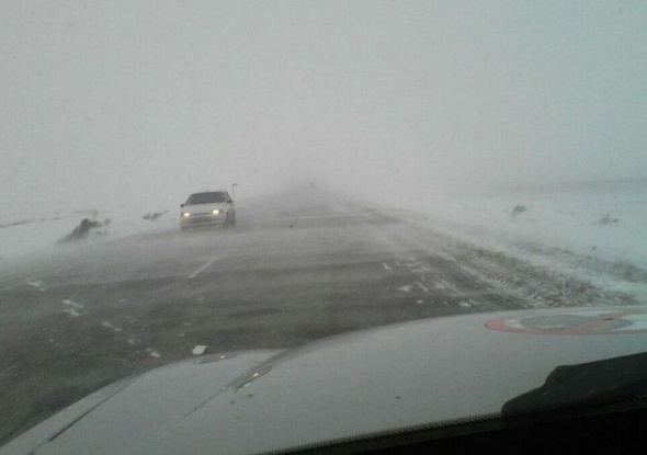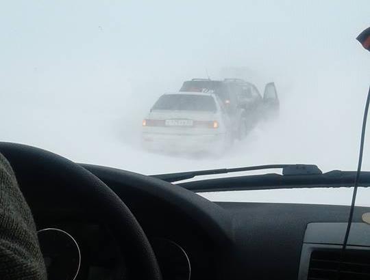 Федеральная трасса на Барнаул вчера, 25 января. Вид из окна машины. Пробка на трассе была больше 1 км. - из-за заносов и полного отсутствия видимости. Но мы прорвались!