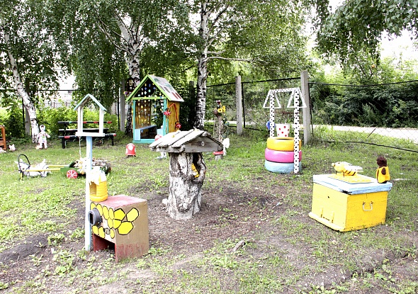 Пока детский сад "Улыбка" был закрыт на ремонт, коллектив и родители приготовили ребятишкам приятный сюрприз. Проявив фантазию и умение сделать из подручных средств массу замечательных вещей, они оформили одну из площадок в стиле "деревенской избы". Также здесь разместились ульи с пчелами, лошадка, "везущая хворосту воз" и многое другое, а за всем этим с забора наблюдает важный петух. Прохожие заглядываются на эту красоту. Ну а детки, которые 19 августа вновь придут в свой любимый детский сад после каникул, безусловно, будут в восторге!