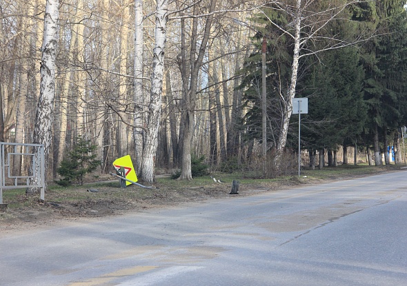 В Змеиногорске на улице Ленина в районе школы №1 сбили дорожный знак Осторожно дети.