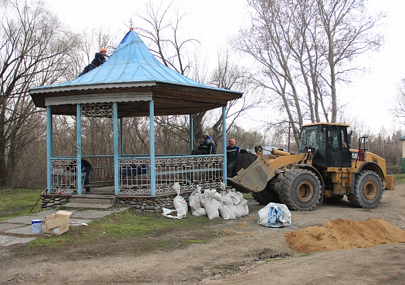 Работники предприятия АО "Сибирь-Полиметаллы" сегодня ремонтируют и облагораживают излюбленное место отдыха горожан - беседку с родником за музыкальной школой.