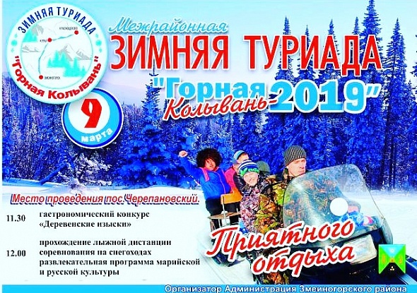 9 марта в 12-00 среди живописного леса и яркого солнца в пос.Черепановский пройдут соревнования среди туристов, захватывающие состязания на снегоходах, для зрителей и участников готовятся русские игры и марийские забавы. Для всех горячее угощения, блины на лопате и дегустация деревенских изысков.Приглашаем всех отдохнуть на свежем воздухе и успешно закрыть зимний туристический сезон в Змеиногорском районе!