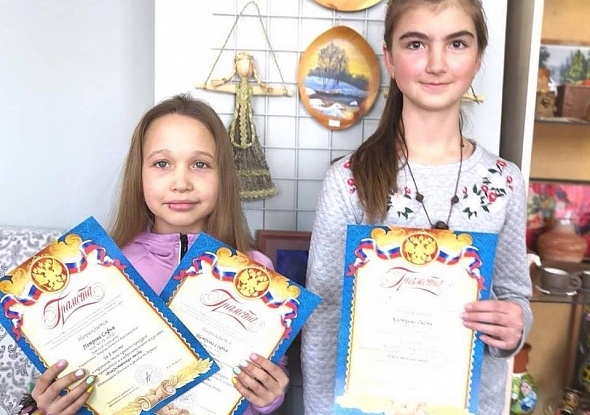 Участницы студии творческого развития "Самоцвет" Дарья Косткина и Софья Петрова заняли 1 места в окружном этапе краевого конкурса декоративно-прткладного и изобразительного искусства "Рождественская звезда" в номинации "Роспись по дереву".