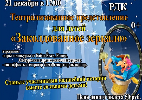 21 декабря в 17 часов в Районном Доме культуры пройдет новогоднее представление "Заколдованное зеркало".