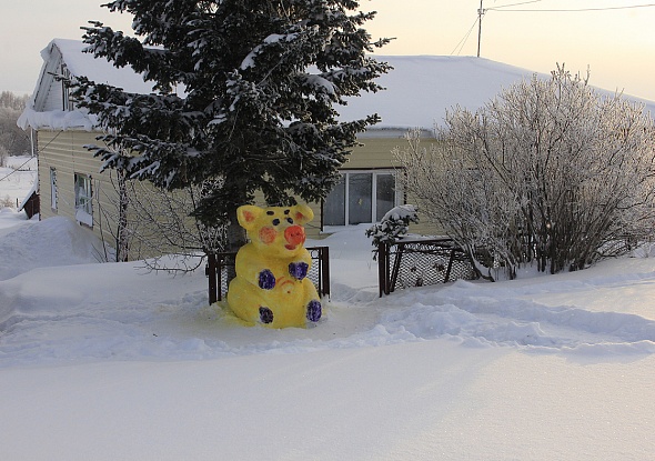 В этом году змеиногорец Андрей Дроздов изготовил возле своего дома желтого поросенка – символ наступающего 2019 года по восточному гороскопу.