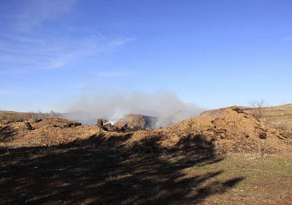 В Змеиногорске на улице Чернышевского в районе бывшего мясокомбината, снова загорелись опилки.