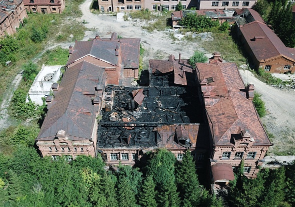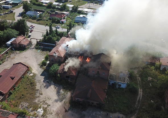 В городе Змеиногорске горит памятник промышленного зодчества 19 века ликеро-водочный завод.