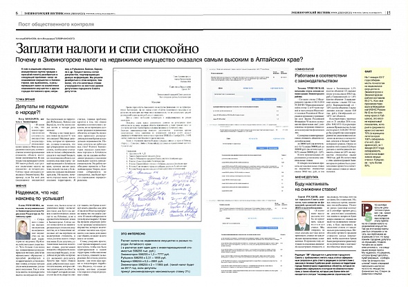 В выпуске "ЗВ" за 16 сентября каждый наш читатель может узнать много интересного по ходу начисления и выплаты налогов на недвижимость в городе Змеиногорске.