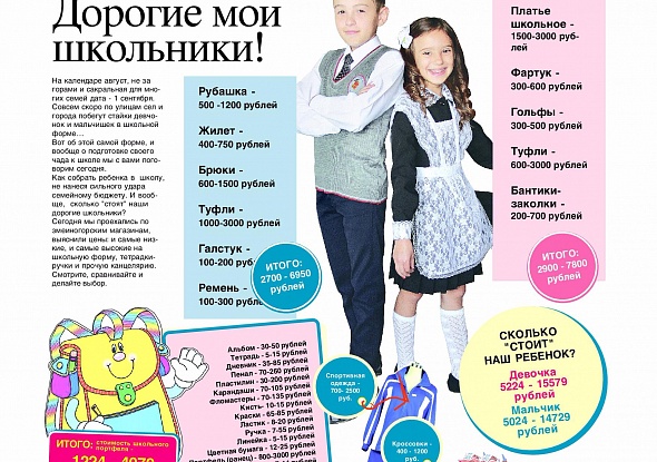 Если вы хотите просчитать сколько денег вы потратите на подготовку детей к школе, читайте по подписке или приобретайте очередной выпуск газеты "Змеиногорский вестник". Кроме этого материала вас ждут немало интересных и неожиданных публикаций.