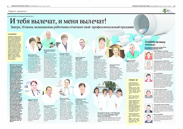 В завтрашнем выпуске "ЗВ" - специальный разворот ко Дню медика. Читайте, покупайте и не забудьте поздравить своих знакомых медицинских работников с профессиональным праздником!
