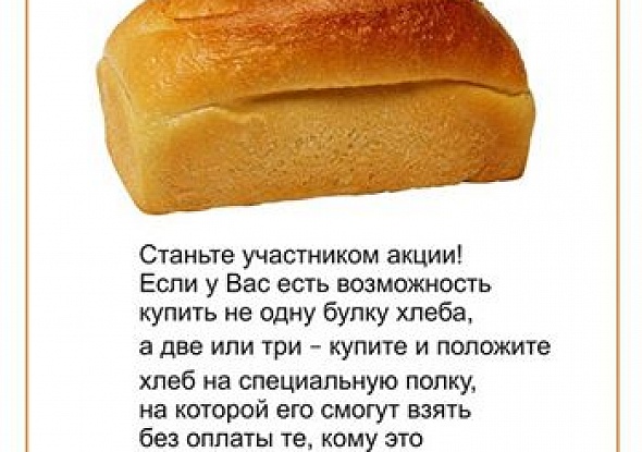 Акция Добрый Хлеб", о которой мы уже сообщали, набирает обороты. В нее включилась еще одна торговая организация - Змеиногорское райпо. Участвуйте в акции, пусть цепочка добра не прервется!